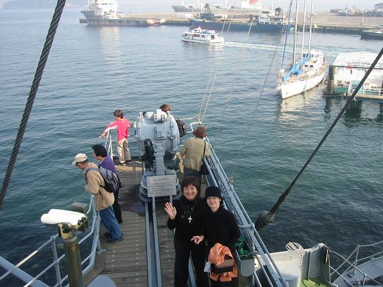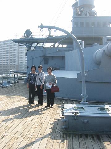 戦艦三笠の船の上にて |
