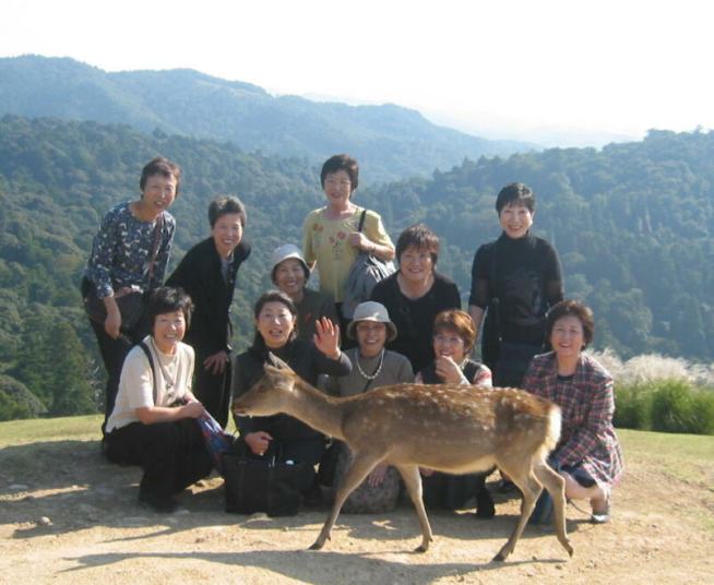 大仏殿から奈良奥山ドライブウェー(有料)を通って若草山へ。お天気が良く奈良市内を見下ろすと、平城京がくっきりと見える。鹿が餌をおねだりして寄ってくる。丸い糞があちこちに転がって歩くのに気をとられてりまう。笑い声とお喋りはおばさんの元気印だ。