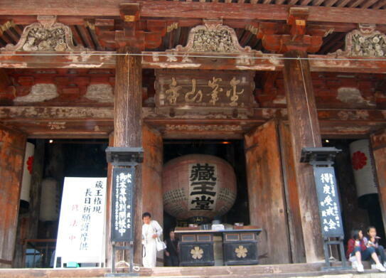 マイクロバスはこれより蔵王堂へ向かう。車中は笑い声と大川弁が飛び交い運転手さん『なんち言よっとか分からっさん』と内心おかしくなる。蔵王堂前でマイクロバスを下りて拝観する。400年間にたった2週間しか御開帳されなかった秘仏『金剛蔵王権現』が世界遺産登録記念に平成17年6月30日まで御開帳されている。憤怒の形相で悪魔から私達をお守り下さっているそうだ。現在過去未来三世にわたりお守り下さる金剛蔵王権現様を拝めて有り難かった。