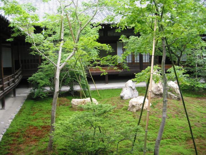 | 日本最古の禅寺建仁寺拝観 | 方丈の縁側から見た法堂 | この様なお庭が数箇所 | 法堂の天井画を見て |